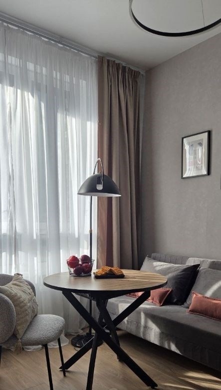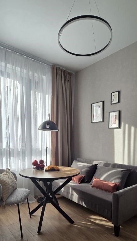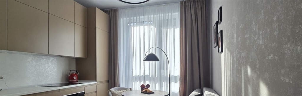 уютная квартира с 1й спальней общей площадью 40 м² в комплексе бизнескласса вереск. выполнен новый дизайнерский ремонт в современном стиле в пастельных тонах. панорамное окно в гостиной наполняет пространство естественным светом. окна выходят в тихий двор. спланирована кухнягостиная с раскладным диваном, изолированная спальня с вместительным шкафом, удобной двухспальной кроватью с ортопедическим матрасом, санузел с ванной и душем, прихожая с просторной гардеробной у входа. квартира полностью укомплектована мебелью и встроенной бытовой техникой weissgauff, включая стиральную машину, посудомоечную машину и духовой шкаф. кухня оснащена электрическим чайником, индукционной плитой и подходящей для неё посудой. установлен кондиционер в комнате, внутрипольный конвектор на кухне и в комнате, теплый пол в санузле. квартира оборудована большим современным телевизором. долгосрочная аренда. курение запрещено. без животных. предусмотрено машиноместо в подземном паркинге за дополнительную плату.агентов прошу не беспокоитьцена 100 тыс рублей в месяц счетчики