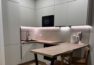 уютная светлая однокомнатная квартира в новостройке с просторной кухней. лоджия. вся необходимая мебель. сдаётся на длительный срок.