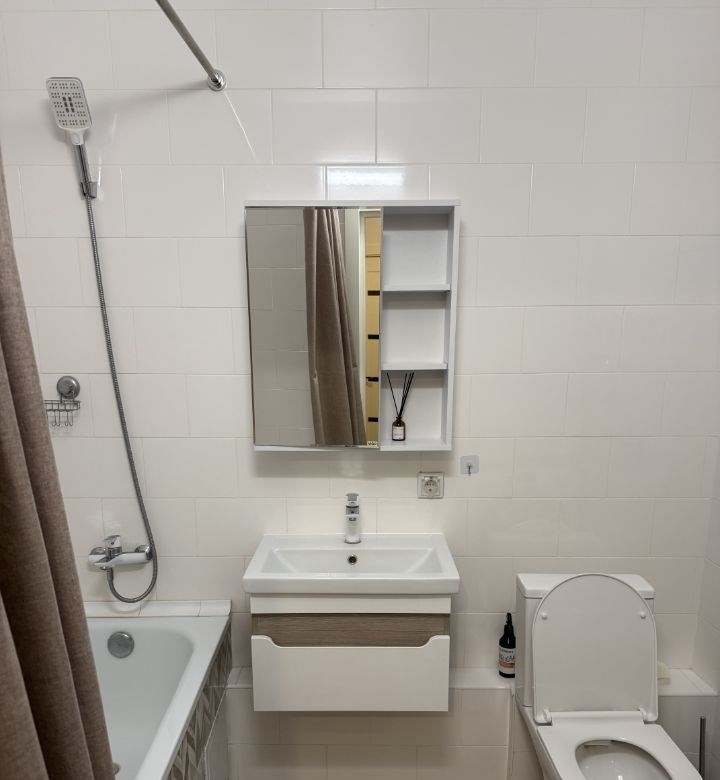 предлагается в аренду уютная однокомнатная квартира в современном жилом комплексе, в 20 минутах езды на автомобиле от метро ольховая. высокие потолки 2,7 м создают ощущение простора, а окна, выходящие во двор, обеспечивают тишину и покой.квартира радует качественным евроремонтом и функциональной планировкой. в вашем распоряжении мебель в комнате и на кухне, что позволяет сразу заселиться без хлопот. из техники есть все необходимое для комфортного проживания кондиционер, холодильник, посудомоечная и стиральная машины, а также телевизор. ванная комната оснащена современной сантехникой и уютной ванной. для дополнительного удобства имеется балкон.дом, в котором расположена квартира, оснащен пассажирским и грузовым лифтами, а также наземной парковкой, поэтому вам будет легко перемещаться и решать бытовые задачи. наличие интернета позволит оставаться на связи в любое время.район, в котором находится квартира, богат инфраструктурой поблизости есть школы, детские сады, клиники и магазины, что делает проживание здесь особенно удобным для семей. записывайтесь, чтобы увидеть все преимущества этой квартиры своими глазами.
