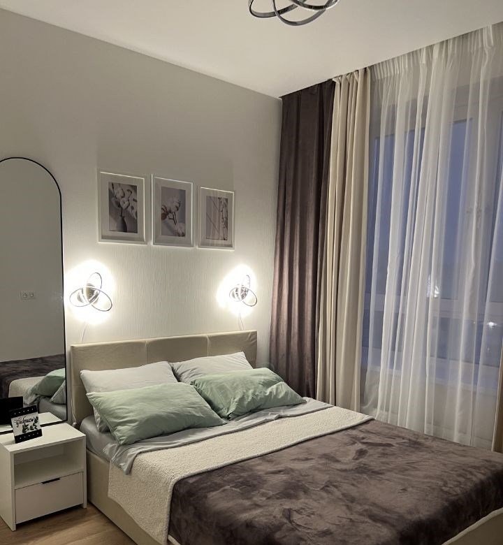 сдается двухкомнатная квартира на длительный срок. год постройки 2025. квартира расположена на 12 этаже монолитного дома с пассажирским и грузовым лифтами. в квартире выполнен дизайнерский ремонт, что создает уютную атмосферу. в наличии все есть, на кровати очень удобный матрац. кухня площадью 10 м² оснащена необходимой бытовой техникой, включая телевизор. комнаты смежные, санузел совмещенный. в квартире есть кабельноецифровое телевидение. курение запрещено, можно проживать с детьми, но без животных.во дворе предусмотрена спортивная площадка и открытая парковка.