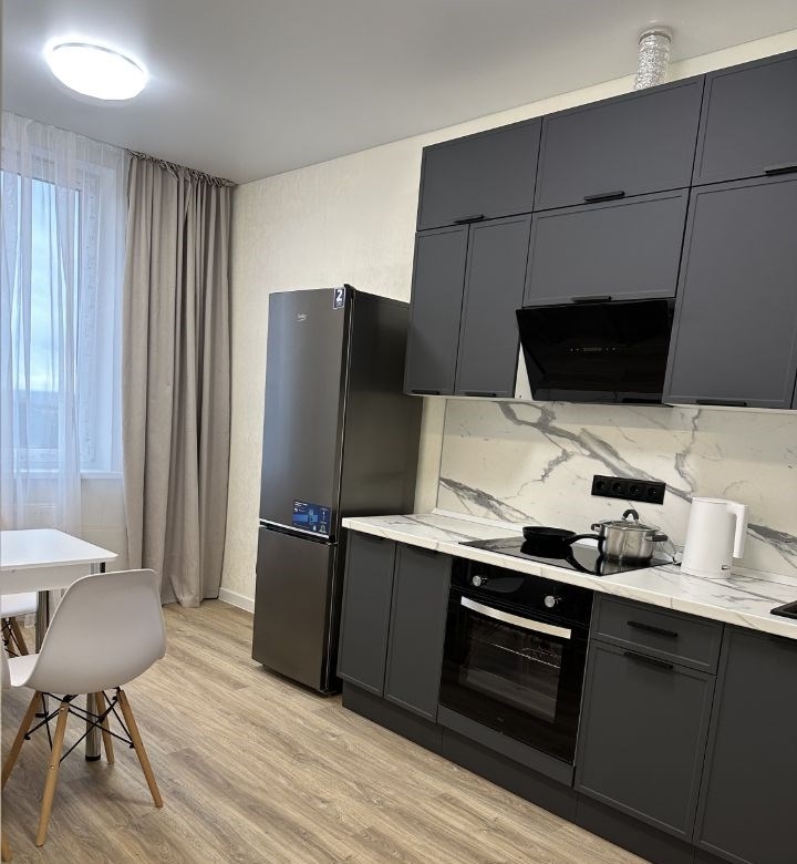 уютная современная просторная двушка. ремонт сделан в 2025 году. есть все для проживания. в зале стоит диван и дополнительная кровать не видно на фото. метро рассказовка в 1 минуте. новый красивый жк. школы, садики, тц сказка все рядом заезжай и живи. без посредников торописьзалог есть.