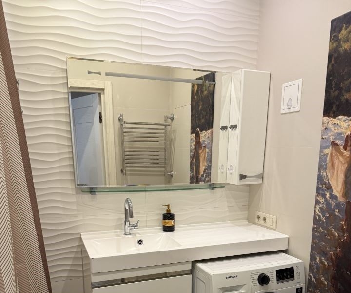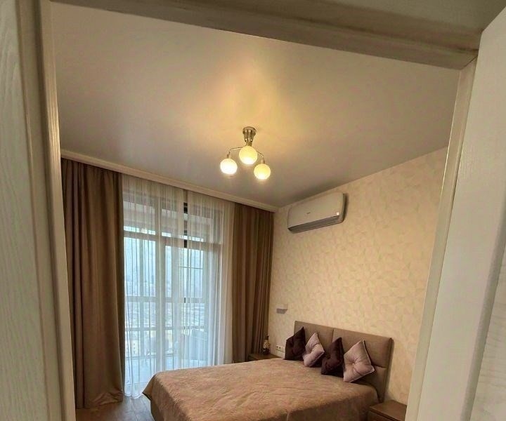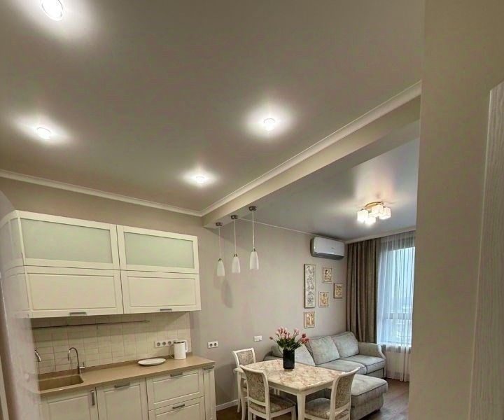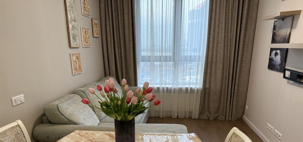 пространство объединенная кухнягостиная, спальня с двуспальной кроватью, раздельный санузел, отдельная гардеробная.состояние квартира в отличном состоянии, чистая и уютная.инфраструктура расположена на закрытой охраняемой территории. в шаговой доступности торговый центр, фитнесцентр и живописная набережная.условия сдается на длительный срок.
