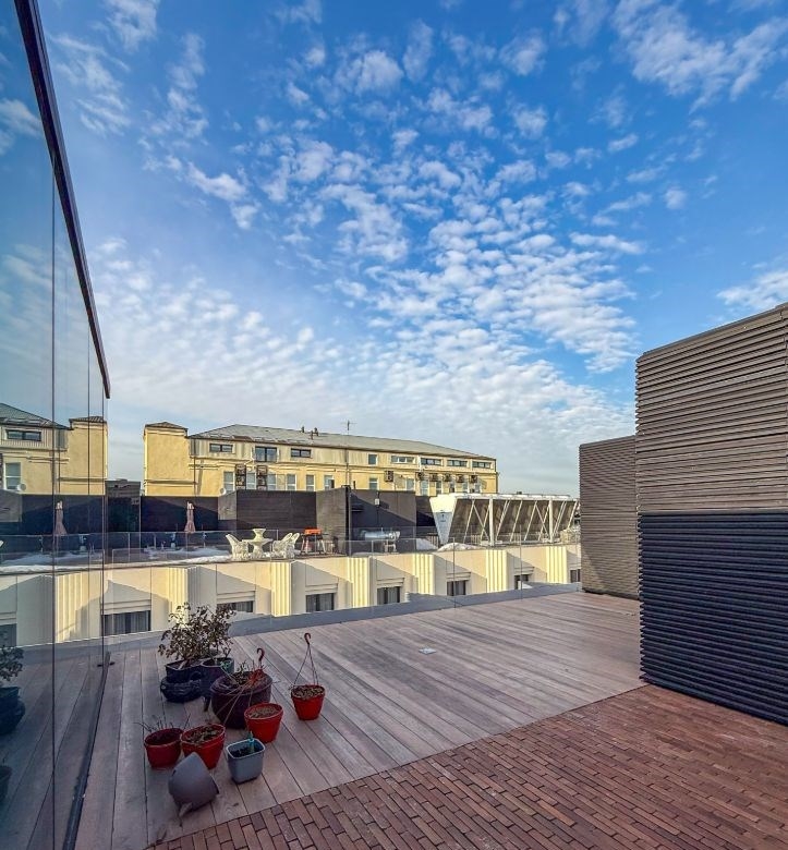 впервые в аренду сдается пентхаус с террасой в клубном доме жк большая дмитровка в нескольких минутах от кремля, большого театра и цума, в историческом центре москвы.апартаменты делались с любовью и под себя. планировка очень удобная для жизни, включает просторную гостиную с кухней, гостевой санузел и прачечную с сушилкой, просторную мастерспальню с личным санузлом и гардеробной. на верхнем уровне находится приватная терраса 50 м2, для отдыха и встреч с друзьями.апартаменты оснащены премиальной встроенной техникой miele, ванные комнаты укомплектованы сантехникой villeroy boch.в жк закрытая территория, вход в подъезд спрятан от лишних глаз и пешеходного потока улицы. тихий, аккуратный, уютный двор с приватной атмосферой.также, имеется 2 парковочных места на подземной парковке, куда можно спуститься за 1,5 минуты на лифте не выходя на улицу. при необходимости можно обсудить возможность аренды без парковочных мест.