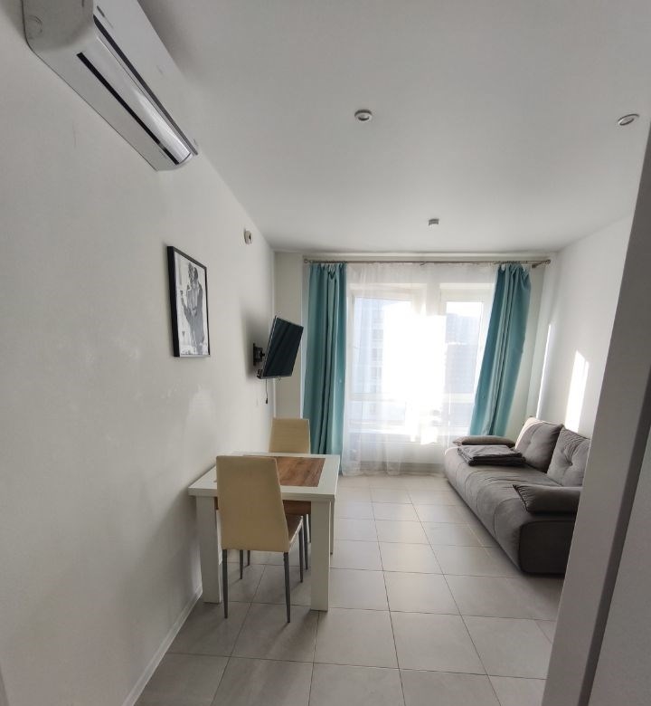 сдается просторная евродвушка. большая кухнягостиная с диваном и отдельная спальня с просторной двуспальной кроватью 180х200. в квартире есть вся необходимая техника, включая кондиционер и мебель. матрас perrino cтайл для комфортного и здорового сна. развитая инфраструктура, все в шаговой доступности. до центра 25 минут. метро в 5 минутах от дома. дворовая территория облагорожена детскими и спортивными площадками. рядом торговый центр саларис. оплата 75,0 счетчики.