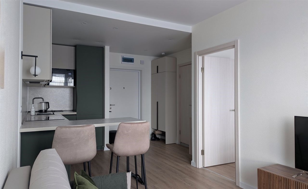 2комнатная евро 31.8 кв.м., 2222 этажсдается впервые атмосферная квартира с панорамными окнами на последнем этаже 22этажного дома. от собственника без комиссии.идеальный вариант для пары или одного. стильный ремонт, полностью укомплектованная техникой кухня, светлая и уютная видовая квартира. даже зимой здесь солнечно и тепло вся необходимая мебель. кровать с подъемным механизмом. диван раскладывается. шкафы в коридоре и спальне. спальня мечты свет, воздух и комфорт. большая кровать и окна в пол. просыпаться здесь одно удовольствие эргономичная кухня со встроенной техникой холодильник, варочная панель, вытяжка, духовка и посудомоечная машина. совмещенный санузел зеркало с подсветкой придает уют, вместительный встроенный шкаф для бытовой химии, стиральная машинка с функцией сушки. закрытый двор без машин. в доме студия растяжки, тренажерный зал, магазины и аптеки. есть кладовки и подземный паркинг сдаются в аренду, наземная бесплатная парковка. обжитой район пекарни, кафе, кальянбары, салоны красоты, пункты выдачи. отличная транспортная доступность 8 минут пешком до метро филатов луг и автобусной остановки. крупные торговые центры в 10 15 минутах езды.звоните, записывайтесь на просмотр