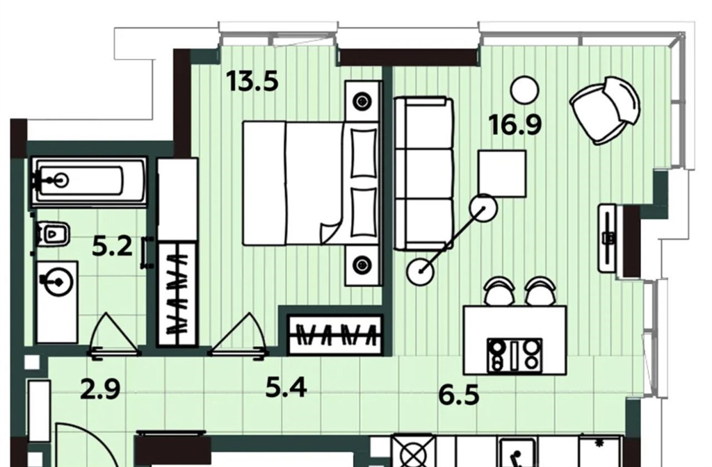 54 м²