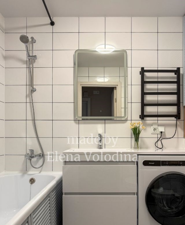 без комиссии агентов, риелторов и управляющих просьба не беспокоитьменя зовут елена володина, я делала дизайн этой квартиры, а теперь помогаю собственнице ее сдать. это просторная двухкомнатная квартира евро2 на третьем этаже в жк руставели 14. 7 минут от м бутырская выход 3. потрясающая локация. одна станция метро и вы на бкл. три станции и вы уже внутри кольца. вокруг дома отличная инфраструктура. в соседних подъездах многочисленные пекарни, кафе, пвз, салоны красоты, магазины вкусвилл, пятерочка, аптеки.каждый квадратный метр квартиры сделан с заботой и любовью. здесь много мест для хранения шкаф в прихожей с отдельной хозбытовой секцией, шкаф в спальне, кровать с подъемным механизмом, большой шкаф в нишу в ванной. есть вся необходимая техника. в каждой комнате по инверторному кондиционеру. на кухне есть варочная, духовка, свч, холодильник, посудомоечная машина, вытяжка, подсветка. в комнате телевизор 50 дюймов. в ванной стиральносушильная машина. квартира сделана в концепции заезжай и живи. в спальне набор постельного белья, подушки, плед, одеяло. на кухне чайник, наборы столовой фарфоровой посуды, столовых приборов, разделочных ножей и досок, сковородка, кастрюли, подставки под горячее, лопаточки. есть утюг, вертикальный пылесос, гладильная доска и сушилка для белья. в спальне предусмотрен рабочий стол на случай, если вам нужно будет поработать из дома. однако хотела бы отметить, что несмотря на то, что дом сдавался в отделке от застройщика, всетаки это новостройка, на этажах могут идти ремонты, поэтому если у вас полная удаленка, то, возможно, будет шумно. а вот если вы работаете в офисе, то, скорее всего, даже ничего не заметите. квартира просторная, уютная, светлая, завидую тому, кто будет в ней жить чтобы записаться на просмотр, расскажите о себе сколько вам лет и где вы работаетечем занимаетесь почему ищете квартиру и рассматриваете именно этот район что для вас важно в квартиремои квартиры уходят с 12 показов, поэтому будьте готовы подписать договор на месте. без комиссии до встречи