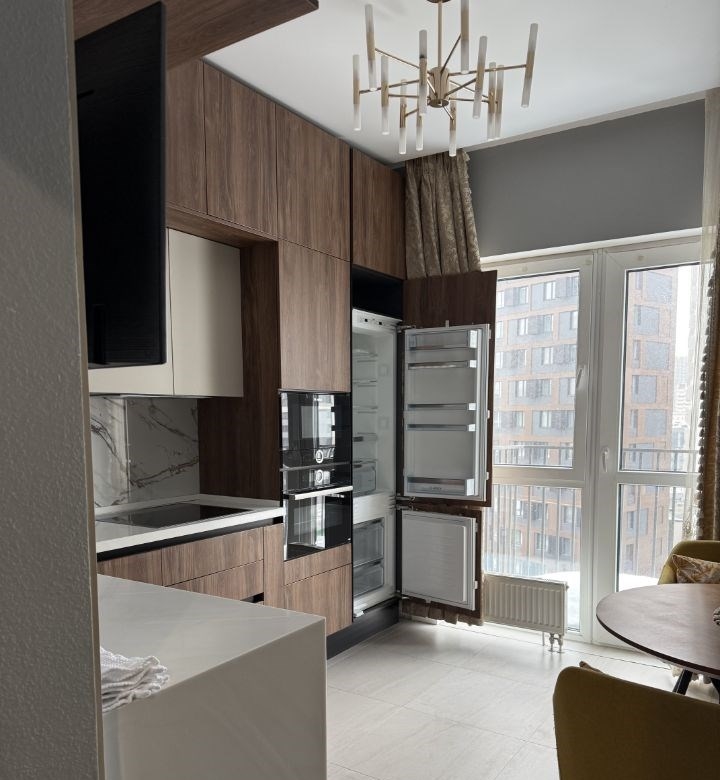 современная квартира с качественным ремонтом и дорогой бытовой техникой. в квартире есть все что необходимо для комфортной жизни, два кондиционера, посудомоечная машина, индукционная плита и так далее, вся техника bosch. на кухне окно в пол и небольшой балкон. дом тихий так как в подъезде только 8 жилых этажей по 4 квартиры, закрытая территория двора и охрана. отличная транспортная доступность, две ветки метро, трамваи и автобусы