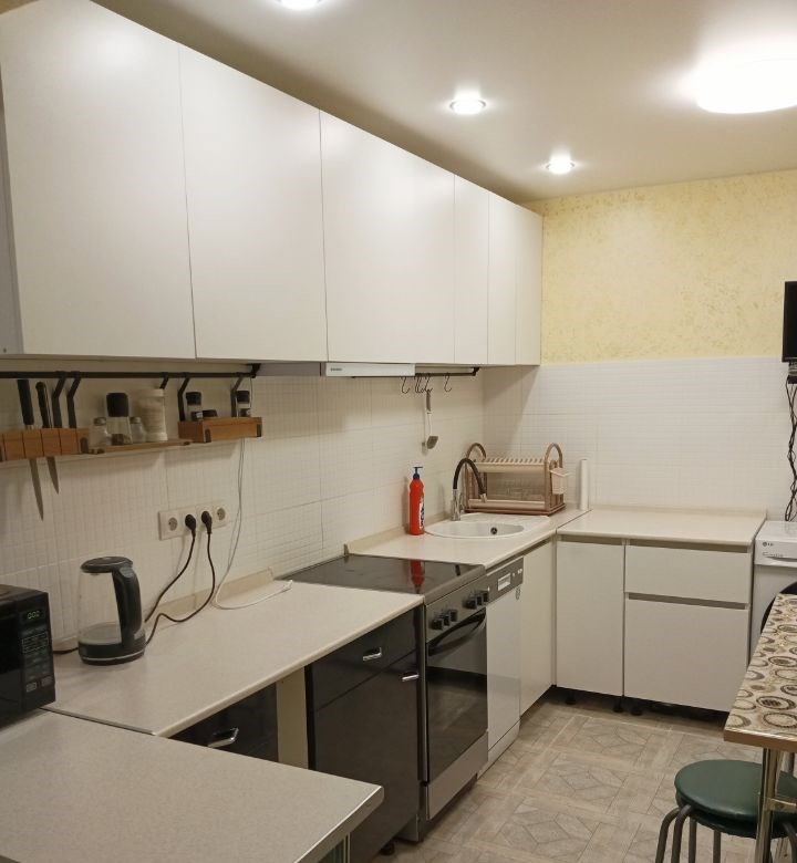 сдаётся уютная двухкомнатная квартира площадью 56.6 кв. м на третьем этаже 16этажного панельного дома. удобная планировка жилая площадь составляет 32 кв. м, просторная кухня 10 кв. м, потолки высотой 2.6 метра. квартира после ремонта, в наличии вся необходимая техника холодильник, посудомоечная машина, стиральная машина, 2 телевизора, микроволновая печь, водонагреватель, на случай отключения горячей воды. в комнатах есть все необходимое для проживания, диван раскладной, кровать с ортопедическим матрасом, шкафы, комоды. дом оснащён пассажирским и грузовым лифтами, мусоропроводом. район с развитой инфраструктурой в шаговой доступности школа и 2 детских сада, новая поликлиника и магазины, пвз, отделение почты и сбербанка, аптеки, дом культуры и прочее. квартира идеально подходит для проживания семьи, не курящих, без животных