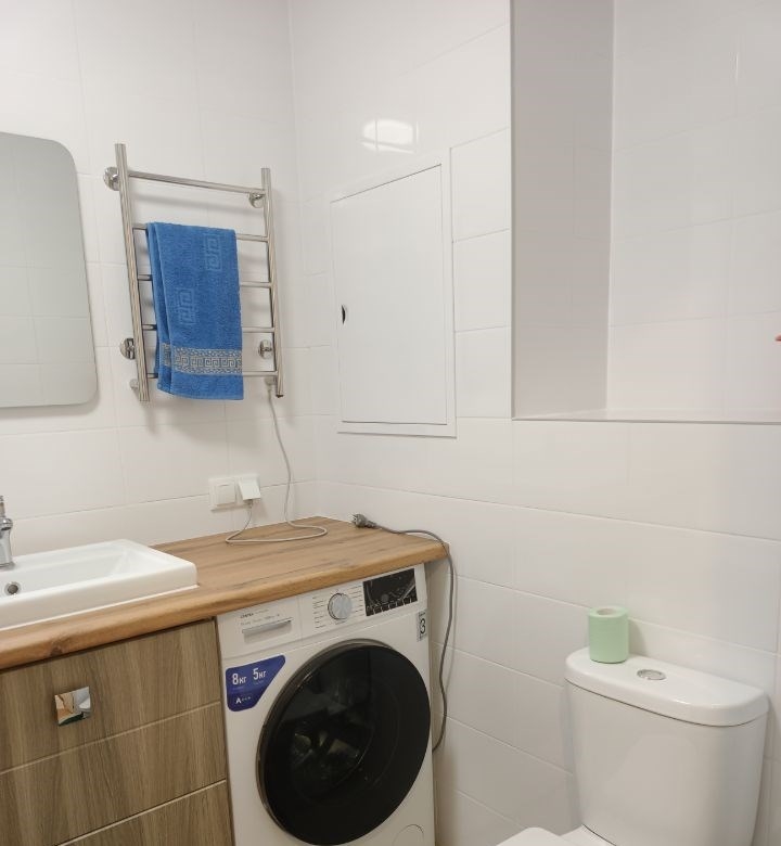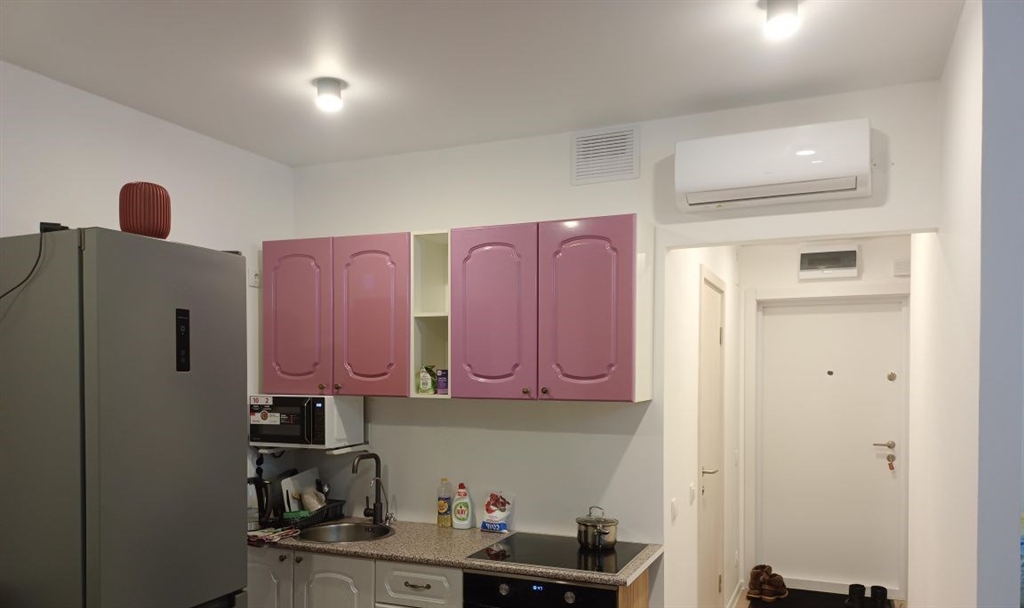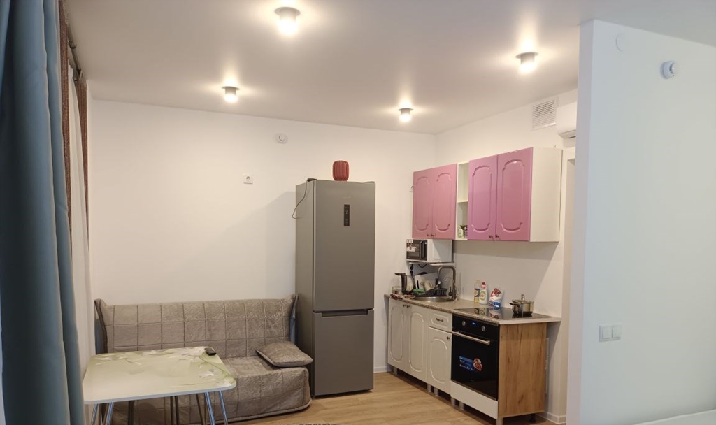 всё новое, новый матрас, мебель, шторы, новая бытовая техника, кондиционер, никто раньше не проживал. кроме микроволновки, есть мультиварка новая, убрана в шкаф. установлен фильтр для воды аквафор. стиральная машинка с сушкой. диван раскладывается вперёд, могут переночевать гости. дом сдан в сентябре 2025. метро рядом 5 мин.