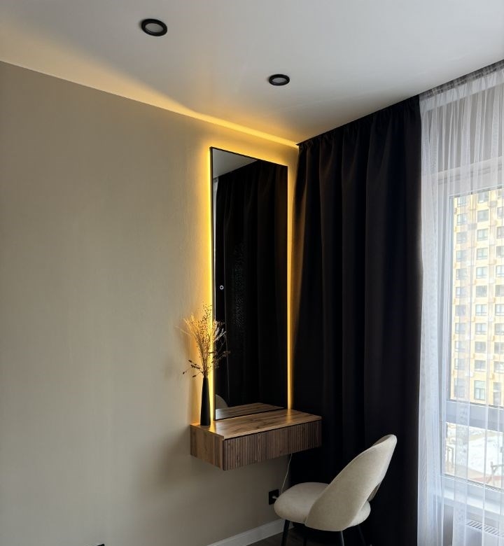сдаётся впервые однокомнатная квартира со стильным ремонтом.в квартире есть вся необходимая бытовая техника кондиционер, посудомоечная машина, встроенная микроволновая печь, варочная панель, духовой шкаф, вытяжка, холодильник, стиральная машина, вертикальный пылесос, чайник, утюг, гладильная доска и сушилка для белья. по желаю можем предоставить кофемашину nescafe dolce gusto в спальне большая кровать 160200 с новым матрасом ikea. есть большое количество мест для хранения. в гостиной раздвижной стол и раскладной диван.в квартире предусмотрено несколько вариантов освещения встроенные светильники, люстры, торшеры, а также зеркала с подсветкой.в санузле душевое ограждение и подвесной унитаз.квартира милая и уютная, идеально подходит для одногодвух человек.