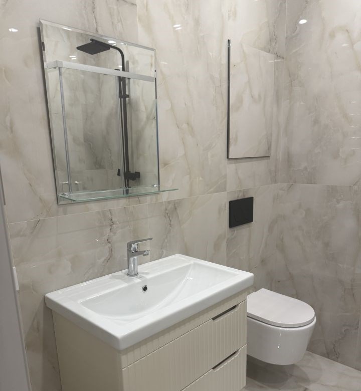 новая квартира полностью укомплектована мебелью, современная планировка и ремонт. в квартире имеется посудомоечная машина, стиральная сушильная машина, кондиционеры в каждой комнате, теплый пол керамогранит, гардеробная комната, индукционная варочная панель, электрический духовой шкаф, холодильник. новые спальные принадлежности. сдается на длительный срок. можно с детьми.