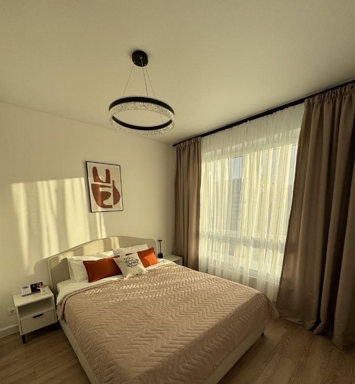 сдаётся впервые современная однокомнатная квартира с евроремонтом на 30м этаже нового дома, построенного в 2023 году. общая площадь 37,3 кв. м, кухня впечатляющей площади 19 кв. м. с высоты потолков в 2,6 метра и окон, выходящих во двор, открывается приятный вид. квартира полностью меблирована. в комнате и на кухне вы найдете всю необходимую мебель. на кухне есть современные бытовые устройства кондиционер, холодильник, посудомоечная машина, духовой шкаф, микроволновая печь, варочная поверхность, фильтр питьевой воды аквафор, чайник, пылесос, телевизор со smarttv. wifi подключен. предоставляется посуда для приготовления, столовая посуда, новое сатиновое постельное белье. также предусмотрена стиральная машина. санузел совмещенный, оборудован ванной. для вашего удобства напольная сушилка, утюг, гладильная доска. отличная транспортная доступность всего 6 минут пешком до ближайшего метро. в шаговой доступности расположены школы, детские сады, магазины, аптеки, кафе и рестораны, фитнесцентр, что делает проживание здесь удобным и комфортным. условия аренды договор заключается напрямую с собственником. возможна аренда по договору, обсуждаются варианты с залогом. без комиссии. сдается чистоплотным, платежеспособным гражданам старше 21 года. звоните и приезжайте на просмотр, чтобы убедиться в том, что это идеальное место для вашего проживания