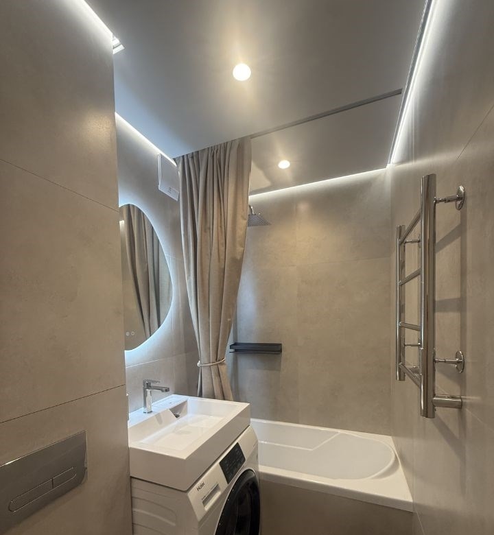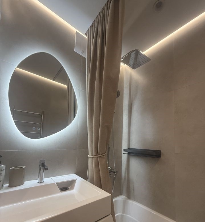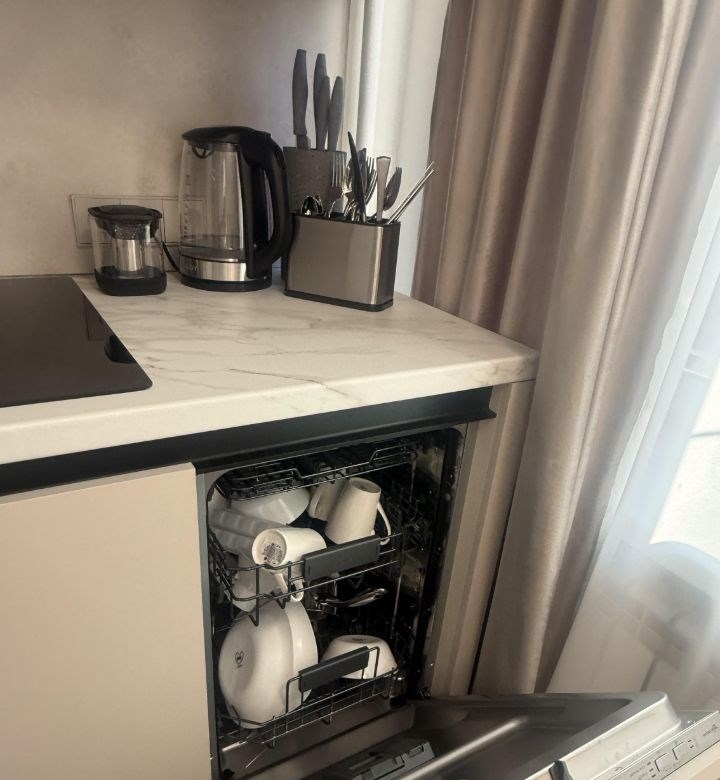 сдаётся в долгосрочную аренду уютная дизайнерская квартира готова к заезду новый ремонт, вся мебель и техника новые и функциональные. планировка выделенная спальная зона и гостиная с разделителем. кухня полностью укомплектована индукционная плита, посудомоечная машина, микроволновка, чайник, холодильник, встроенный фильтр для воды, полный набор посуды и столовых приборов. в гостиной раскладывающийся диван и большой телевизор samsung 55 с современными функциями. дополнительно утюг, беспроводной пылесос haier. сантехника и комфорт стиральная машина haier, электрический полотенцесушитель, вентиляция в ванной. подключён беспроводной интернет.квартира идеальна для одной пары или небольшой семьи, без животных. готовы оперативно показать по договорённости. звоните или пишите для просмотра и уточнения условий.