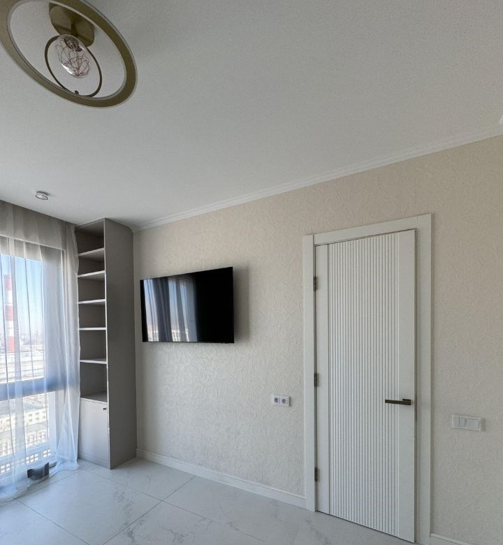 в аренду предлагается красивая евро 2х комнатная квартира.квартира располагается в жк метрополия, в белоснежном корпусе амстердам, на 24ом этаже, из окон которого открываются завораживающие виды на город и закаты.квартира состоит из прихожей 2 м2 с большим встроенным шкафом, гостиной 16,3 м2 с большой кухней, ванной комнаты 4 м2, комнаты 12 м2 и гардеробнойкладовой 4 м2.в квартире имеются электронный замок на входной двери, работающий по брелкам, кодам и отпечатку пальцев, кондиционер, холодильник, 2 больших телевизора в каждой комнате, посудомоечная машина, микроволновка, стиральная машина, теплые полы, проточный водонагреватель, аквасторож,под желание арендатора в спальню будет приобретен большой удобный диван или кровать, также обсудим другие потребности.квартира укомплектована всем необходимым для комфортной жизни, всё новое.аренда от собственника.