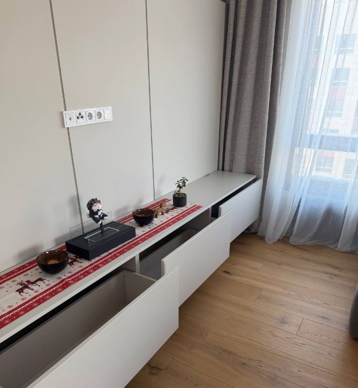 идеальная квартира для тех, кто любит комфорт, функциональность и умопомрачительные видывпервые сдается двухкомнатная квартира евродвушка с дизайнерским ремонтом в жк руставели 14 рядом с метро бутырская.просторный холл с парящими шкафами и зеркалом в пол. в шкафах достаточно места для верхней одежды, встроены обувницы, гладильная доска, замаскирован роботпылесос с сухой и влажной уборкой roborock qrevo maxv. плитка во входной зоне, далее по всей площади квартиры инженерная доска. изолированная спальня с большой двуспальной кроватью с подъемным механизмом. вся мебель сделана на заказ, есть гардероб, рабочее место с подсветкой, широкий подоконник, на котором удобно сидеть и любоваться видом вднх и останкинской башней. в спальне несколько контуров света, кондиционер и бризер, на окно установлены жалюзи.большая светлая кухнягостиная, зоны которой разделяет удобный раскладывающийся диван. кухня с островом и сервант сделаны на заказ. в остров встроена столешница, винный шкаф, духовка с свч. также кухня оборудована встроенным холодильником, посудомоечной машиной, варочной панелью, вытяжкой. мойка и смеситель omoikiri, фильтр для питьевой воды. на кухне имеется вся необходимая посуда для приема и приготовления пищи. широкий подоконник под окном, также как и в спальне выходящим на останкинскую башню всего в кухнегостиной три окна. установлены кондиционер и бризер.в ванной установлена душевая кабина с тропическим душем, подвесной унитаз, гигиенический душ, стиральная машинка с функцией сушки. подвесная тумбочка с отлитой раковиной, шкаф для хранения. встроенный теплый пол.дом новый, введен в эксплуатацию в 2024 году, ремонт закончен в апреле 2025 года. звукоизоляция потолка, произведена замена окон от застройщика. в домофонах установлены камеры, управление с телефона. внизу магазины пятерочка, вкусвилл, заряд магнит, улыбка радуги, ароматный мир, винлаб. кафе здрасте, french bakery, буханка.пешком 5 минут до м. бутырская, 10 минут до станции мцд3 останкино, 15 минут до хлебзавода и флакона. сдает собственник. звоните, с радостью отвечу на ваши вопросы.p.s. агентов и риелторов просьба не беспокоить.