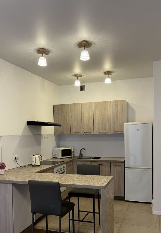 сдаётся уютная однокомнатная квартира на длительный срок. по сути эта двухкомнатная квартира со спальней и совмещенной с залом кухней.комната светлая и просторная, с большими окнами, выходящими в тихий двор.кухня оборудована всем необходимым холодильник, плита, микроволновая печь и обеденный стол. ванная комната совмещена и оснащена современной сантехникой, включая стиральную машину.в квартире есть балкон с панорамным видом на фонтан, где можно наслаждаться вечерними пейзажами живописного района.парковка открытая во дворе, доступны грузовой и пассажирский лифты.