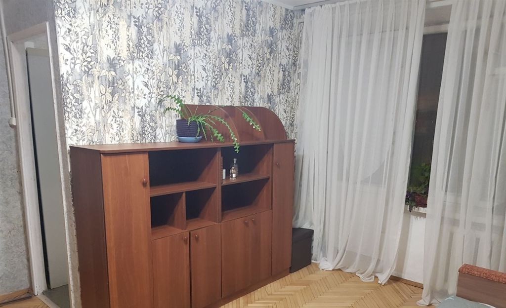 скромная светлая и теплая однушка.имеется раскладной диванчик, спальное место 200х160, 2створчатый шкаф, стеллаж, шкафчик с полочками, ковер и коврик.паркет светлый березовый, балкон открытый, соседи тихие, магазины рядом, метро на выбор.городского тел. нет.