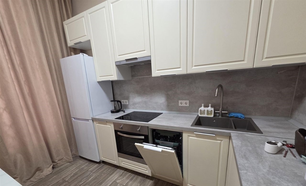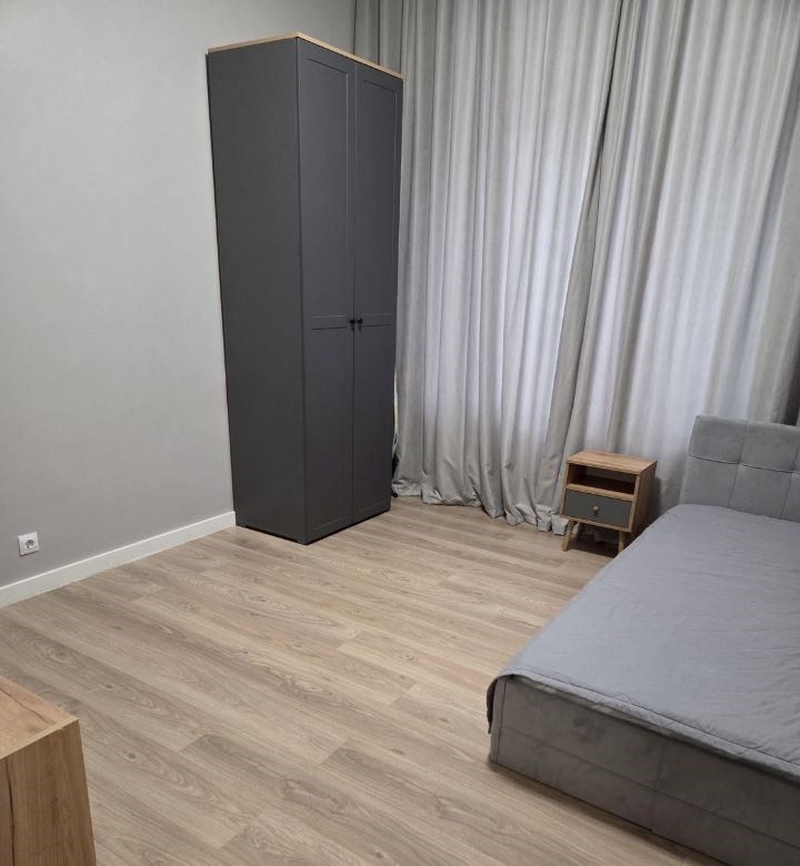 сдается двухкомнатная квартира с современным евро ремонтом на первом этаже панельного дома 2021 года постройки. в квартире изолированные комнаты, что обеспечивает комфорт и приватность. просторная кухня площадью 11 м² оснащена всей необходимой техникой, включая холодильник и стиральную машину.в комнатах установлены телевизоры,а также вместительные шкафы для хранения вещей. в спальне есть двуспальная кровать и дополнительное спальное место, в детской комнате диван,шкаф,телевизор. в квартире предусмотрены все удобства для комфортного проживания кондиционер и современная мебель.санузел совмещенный, выполнен в стильном дизайне с качественной отделкой. во дворе закрытая территория с открытой парковкой и спортивной площадкой. дом оборудован тремя пассажирскими и четырьмя грузовыми лифтами. курение в квартире запрещено, можно проживать с детьми, но без животных.в просторной,закрытой секции всего 2 квартиры и доьрожелательные соседи,что позволяет оставить детскую коляску или велосипед.