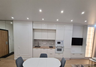 уютная квартира с дизайнерским ремонтом,никто не жил,все новое.полная замена труб,сделана новая стяжка пола.электропроводка полностью заменена на новую.навесной потолок, пластиковые окна melke,новые полы ламинат 33, стиральная и посудомоечная...