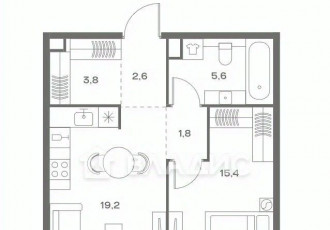 продается 1комнатная квартира площадью 42.9 м² в жилом комплексе дом на часовой