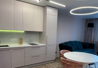 арт. 128744727 квартира с дизайнерским ремонтом с использование дорогим стройматериалов. комната разделена на две зоны гостиную, и спальню. утепленная лоджия на которой сделан кабинет. рядом прогулочные зоны, большой лесопарк. школы и детские сады...