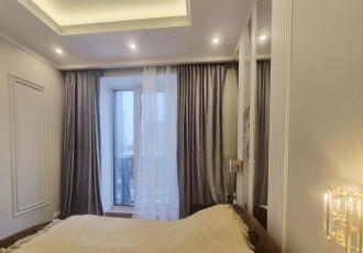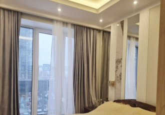 панорамный вид на центр, окна в пол, новый ремонт, делали для себя, премиальный уровень всех материалов, вся мебель на заказ, продуманы все мелочи для комфортной жизни теплый пол, шторы блек аут, гардеробная система есть гардеробная и в спальне...