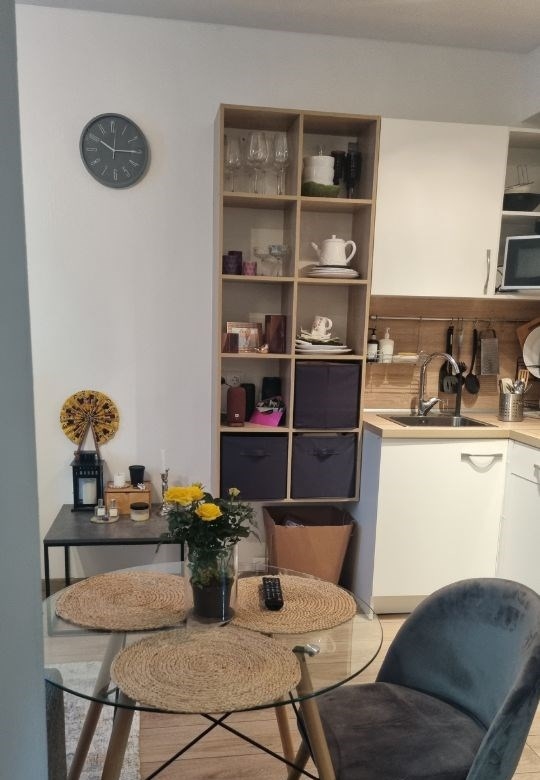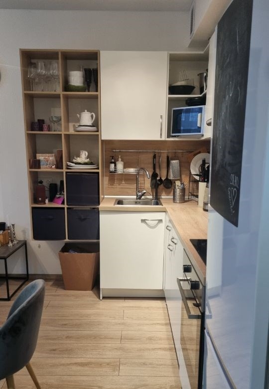 продаю свою уютную квартиру апартаменты по жилому статусу в жк барбарис 2019 г., 10 мин от метро бибиревопро квартиру уютная кухнягостиная вмещает кухню, диван и тв зону, а также обеденную зону. отдельная спальня, с нишей для кровати, местом для хранения вещей и работы просторная ванная комната, вмещающая санузел, хозяйственный угол, а также шкаф для хранения всех нужных вещей коридор с большим встроенным шкафом купе, открытой вешалкой для верхней одежды и шкафом для обуви и мелочей. квартира находится на 2ом этаже 1ый жилой и выходит окнами в тихий двор. мебель кухонный гарнитур, встроенный гардеробный шкаф в коридоре, диван, кровать и мебель в спальне, шкаф в ванной комнате. остальная мебель и техника по согласованию с покупателем. про дом достойный жк, удобное расположение от метро в развитом районе. есть возможность парковать авто во дворе за шлагбаумом. консьерж, грузовой лифт, колясочная
