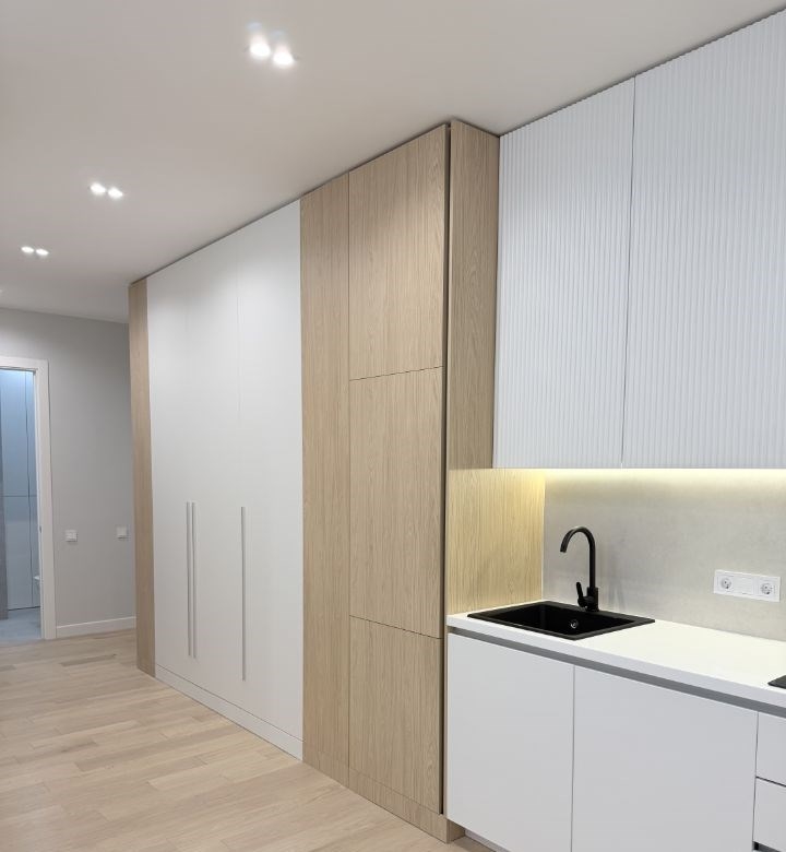 новая квартира после ремонта , на полу паркетная доска , кухня мдф краска не пленка, не пластик, высокие двери , сантехника и техника на кухне известных европейских брендов . один собственник.