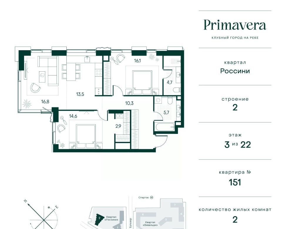 клубный город на реке primavera это современный жилой комплекс премиумкласса, расположенный на первой береговой линии москвыреки в экологически чистом районе покровскоестрешнево.под панорамными окнами квартир находится собственный экопарк с продуманной сетью прогулочных дорожек и современными детскими и спортивными площадками. за парком расположена набережная с собственным пляжем и зонами для отдыха.клубный город на реке primavera предлагает широкий выбор планировок для различных жизненных сценариев от просторных однокомнатных квартир до пентхаусов и жилых помещений с террасами и патио. выберите из 120 вариантов эргономичных планировок стандартного и евроформата.из каждой квартиры открываются красивые виды на реку с углом обзора в 270 градусов. дизайнерские лобби предлагают панорамный обзор на благоустроенный двор. высокие потолки в 6 метров и качественная отделка создают атмосферу, схожую с пятизвездочными отелями.в primavera есть всё необходимое для комфортной жизни в мегаполисеобразование для детей в шаговой доступности 4 школы, 8 детских садов и развивающие центры с кружками и секциями.удобства на расстоянии приятной прогулки супермаркеты, кафе, рестораны с верандами, салоны красоты, аптеки и многофункциональный центр для шоппинга и развлечений.умный дом автоматизированное бесконтактное управление основными системами доступа и безопасности через мобильное приложение.клубный город на реке primavera выгодно сочетает комфорт городской жизни с близостью к природе. живите в месте, где все создано для вашего удобства