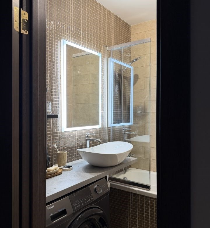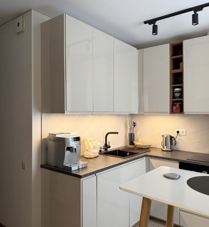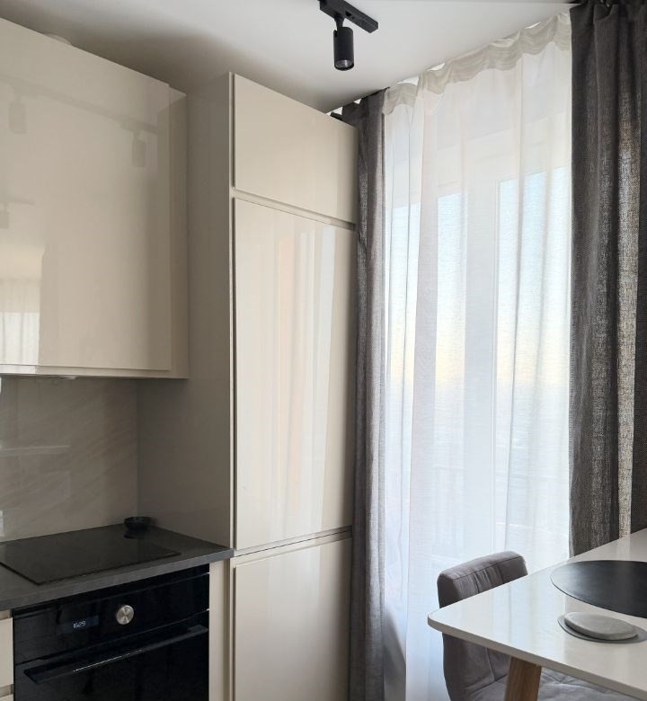 риэлторам не беспокоить. пожалуйста. продаётся чудесная однокомнатная квартира с дизайнерским ремонтом в жк домашний. комплекс с красивыми фасадами и разноуровневой застройкой, ухоженные дворы, прогулочная аллея, детские площадки в каждом дворе. кафе, магазины, пвз, аптеки, салоны красоты и даже шикарный груминг, около вашего дома есть буквально всё.в квартире большая комната 20 кв. м, отдельно выделена зона спальни, есть система хранения, рабочий стол, стеллаж, диван разбирается в полноценное спальное место на двоих. собака и цветок не входят в предложение не могу не отметить эркерное окно, дарит очень много света и воздуха в комнате. вид из него урбанистичный, но весеннелетние закаты сведут вас с ума своей палитрой красок пол ламинат в жилой зоне, симпатичная и практичная плитка во всех остальных. все стены обои marburg, вид дорогущей текстуры и цвета. натяжной потолок отдельная гордость, шикарный матовый, никаких позорных плинтусов, только идеальный теневой кантик по периметру. кухня 8,21 кв. м, успели в своё время купить ikea, это чудесная voxtorp, светлый глянец идеально, не сильно заметны пальчики. микроволновка с функцией духовки, индукция на три секции, полнокомплектная новая посудомойка санузел 3,51 кв. м, совмещённый, шторка для любителей исключительно душа, ванна для ценителей пены. стиралка не остаётся, но под раковиной на днях появится ящик и навесной пенал слева от зеркала вместо полочек.квартира продаётся с мебелью, можно заехать и жить без дополнительных вложений.