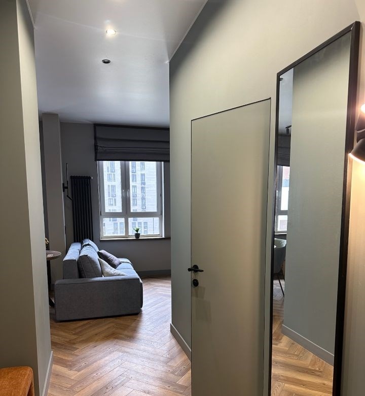 предлагаем вашему вниманию однокомнатную квартиру в мкр. скандинавия. квартира выполнена в полном соответствии дизайнпроекту, мебель и фурнитура выполнена из качественных материалов натуральный шпон дерева, крашеный мдф, доводчики и петли bloom, выезжающая платформа для кофе машины и много других продуманных до мельчайших подробностей деталей. квартира перепланирована в уютную зонированную студию с просторной гардеробной комнатой. под натяжным потолком расположена закладная, поэтому при желании можно установить раздвижную перегородку. стена за телевизором задекорирована натуральной гипсовой панелью. в квартире остается вся мебель и встроенная техника. скандинавия это новый современный район с уже развитой инфраструктурой. за домом расположен парк для прогулок с живописными видами, каскадными ручьями и детскими и спортивными площадками. есть велосипедные дорожки, ведущие к бачуринскому лесу, где вы можете в полной пере насладиться свежим воздухом и пением птиц звоните, покажем квартиру и расскажем о ней больше