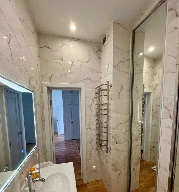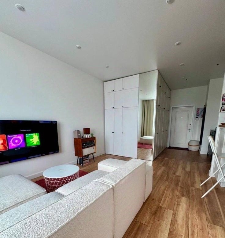 продвается стильная квартира, фактической площадью 46.8 кв.м. лоджия присоединена к комнате, с мебелью и техникой стиральная и сушильная машинки, свч, духовка, посудомойка, варочная панель 2 комфорки, кондиционеры 2 шт. в су, в коридоре и кухне теплые полы. много зон хранения, помимо большой зоны шкафов, гардеробная и кладовка. стиральная и сушильная машины, посудомойка, духовка с свч, холодильник, варочная панель 2 комфорки, кондиционеры 2 шт. теплые полы в су, коридоре и кухне.стены покраска, пол плиткаламинат, потолок натяжной. шумоизоляция в спальне и пол по всей площади. последний жилой этаж, сверху этаж с кладовками.