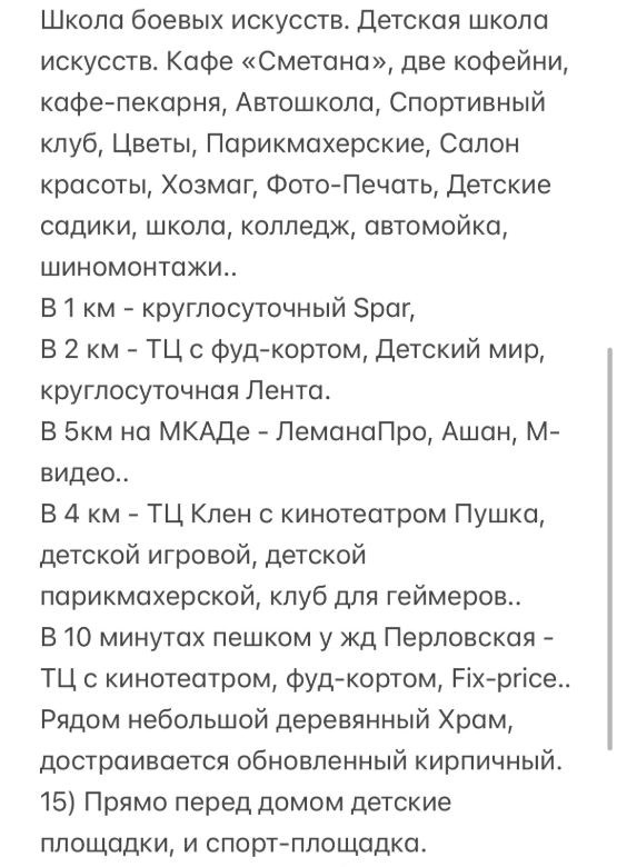 есть проверенный риэлтор из инком. через него буду все оформлять. сделка в офисе инком поэтому и покупателю безопасно будет.. и бесплатно..идеальная квартира1 расположение вдали от суматохи города, но при этом 3 минуты пешком до конечной автобусов по выделенной линии экспресс 903 по обычной цене ходит каждые 5 минут 15 минут ростокино метро, мцк, мцд, и огромный тц европолис с кинотеатром, игровыми и тд. 20 минут вднх.30 минут проспект мира, конечная. это быстрее, чем жить рядом с большинством метро..туда и обратно сидя всегда ехали, на конечных садясь. 7 минут пешком до жд станции лось. и 22 минуты на электричке ходят каждые 7 минут до ярославского вокзала, где сразу с перрона вход в м.комсомольская. то есть 29 минут от квартиры.. тут же площадь 3х вокзалов..у станции лось также конечная автобусов..2 в 1 км парк лосиный остров, в другую сторону в 1 км облагороженный джамгаровский парк с огромным прудом, большим и настольным теннисом, баскетболом, волейболом, скейтпарком, клетка для единоборств.. там же открылись московские сезоны.в 1 км открывается осталась только внутренняя отделка современный центр фитнес, бассейн, единоборства, сауна, игровая, .. рядом со станцией лось и сейчас есть фитнес..3 на машине ярославское шоссе рядом, на мкад выезд быстрый. если на такси по выделенной линии до центра быстро. 4 3 этаж квартиры не нужно ждать лифта внизу, сверху.. время в лифте.. 5 окна выходят не во двор, а в сторону, где нет впритык домов окна к окнам, и под окнами за домом машины и люди раз в час появляются. солнце после 12 заходит за дом в жару не жарко, при этом всегда светло перед окнами простор.6 квартира без дверей на кухню и в комнату, и более того расширены проёмы до потолка и стен согласованы для 1комнатной огромное значение.7 стяжка пола, ламинат, выровнены стены, ванна и раковина в прекрасном состоянии вся ванная супер, и в целом дизайнерский ремонт квартиры. окна не поддувают, большой теплый полотенцесушитель. потолок только нужно покрасить, облупляться стал я начал подготовку. но учитывая что единое пространство квартиры и двигать ничего не нужно, то совсем не проблема, большим укрывным материалом все закрыть перед работой, и все.8 все что в квартире кроме телевизора остается кухня икеа нижний ярус с доводчиками, новая столешница, варочная панель и духовой шкаф electrolux, стиральная машина lg, тихий холодильник liebherr, зеркальный шкафкупе плавный ход створок очень вместительный, кровать hoff с подьемным механизмом огромный ящик внутри, белый раскладной диван, .., турник..9 в квартире жили спокойные позитивные люди я с женой, потом и с дочкой сейчас дочке 5 лет уже, поэтому переезжаем. также покупателю приятнее въезжать в квартиру, где жили аккуратные, чистолюбивые люди.продолжение описания последние 3 фото так как максимум тут возможно 3000 букв