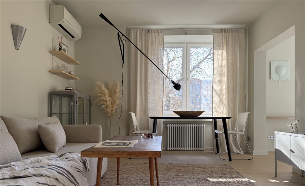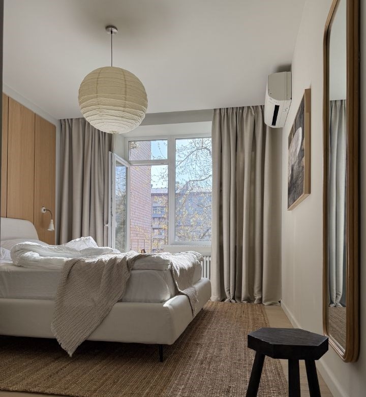 в продаже светлая двухкомнатная квартира с балконом после ремонта, в лучшем районе москвы. интерьер квартиры вдохновлен стилем midcentury, в отделке использовались натуральные материалы, шпонированные дубовые панели, бельгийская паркетная доска, винтажные светильники, мебель, ковры из кожи и джута. функциональная планировка включает кухню, столовую и гостиную в одном пространстве, спальню с гардеробной и рабочим местом, раздельный санузел, постирочную. квартира полностью меблирована и оборудована бытовой техникой. согласовано выделение дополнительной электрической мощности на квартиру, официально заглушена газовая труба, что позволило соединить кухню с гостиной. закрытый внутренний двор, есть возможность припарковаться. удобная транспортная доступность в 5 минутах метро фрунзенская. богатая инфраструктура хамовников усачевский рынок, парк мандельштама, фрунзенская набережная с прогулочными зонами и велодорожками, множество ресторанов и кофеен, фитнес клубы, супермаркеты, и многое другое.свободная продажа, дкп 2017 года, один взрослый собственник, никто не зарегистрирован.