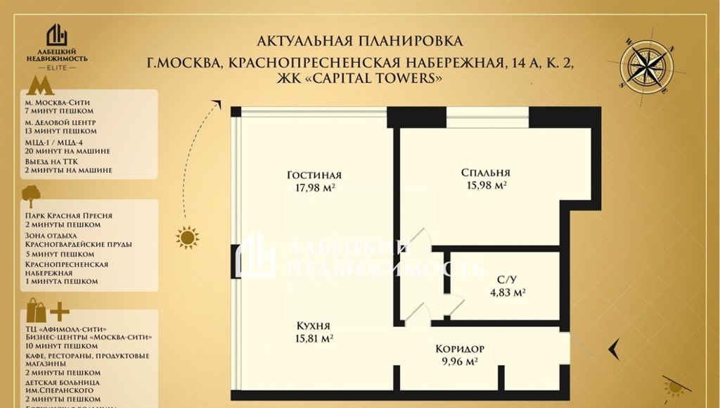 добрый день продаём стильную 2комнатную квартиру европланировки с премиальной дизайнерской отделкой и потрясающим видом на москвасити. продажа без комиссии описание и фотографии соответствуют действительности про квартирувыполнен дорогой ремонт из премиальных материалов, делали для себя. в квартире не жили, все в идеальном состоянии напольное покрытие единое из натурального дерева coswick, установлены внутрипольные конвектора с терморегуляторами, итальянские дверикухня выполнена на заказ, качественная фурнитура, доводчики и открывание push, столешница из натурального камня. вся встроенная техника премиальных брендов посудомоечная машина bosch, вытяжка elica, духовой и винный шкаф мiele, холодильник liebherr, варочная поверхность siemens.в сузле использован крупноформатный итальянский керамогранит, люксовая сантехника hansgrohe, пол с подогревом. окна квартиры выходят на разные стороны дома, окно спальной в тихий двор, из кухнигостиной вид на лес. эргономичная планировка кухнягостиная с панорамными окнами, отдельная спальная с нишей под гардероб, просторный совмещённый санузел с ванной, вместительная прихожая. высота потолка 3.1м. панорамные окна обеспечивают много света и пространства. о комплексе capital towers закрытая территория, круглосуточная охрана. консьержсервис 247, приватные лобби фитнес, спа, бассейн с панорамным видом парк во дворе подземный паркинг с зарядками для электромобилей чистый воздух и вода современные инженерные системы идеальный формат интерьер, в который не нужно вкладываться, и вид, который продаёт сам себя. 3 минуты до москвасити, 5 минут до метро рядом парк красная пресня, набережная, рестораны и магазины премиумкласса.про документы квартира приобретена по договору долевого участия, 1 взрослый собственник, без обременений. в квартире никто не зарегистрирован. свободная продажа, укажем полную стоимость в договоре. собственник будет лично присутствовать на подписании. квартира подходит под ипотеку, при необходимости поможем вам с одобрением.звоните, чтобы договориться о просмотре
