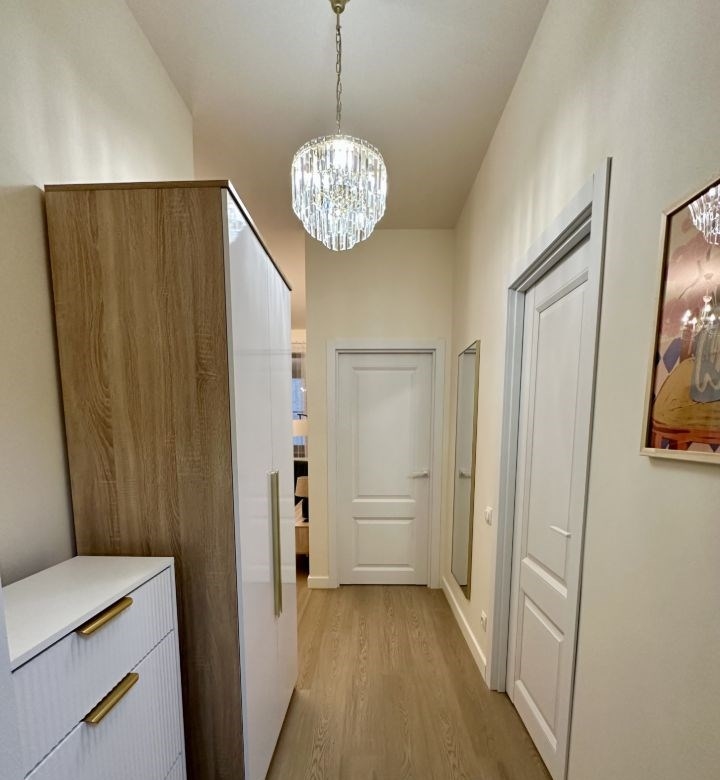 единственные апартаменты с новым ремонтом в жк водный современный ремонт 2025 года. функциональная планировка. полное оснащение всех необходимым для проживания мебель, встроенный кухонный гарнитур, бытовая техника.квартира расположена на 5 этаже 26этажного монолитного дома 2015 года постройки.общая площадь 43,4 кв.м. высота потолков 2,7 м.1 просторная кухнягостиная оборудована кондиционером. кухонный гарнитур полностью укомплектован всей необходимой техникой.2 изолированная спальня с отдельной гардеробной3 совмещенный санузел с душевой кабиной4 просторный холл с гардеробной зоной5 застекленная лоджиялокацияметро водный стадион в 5 мин. ходьбырядом проходит головинское шоссе, поблизости выезд на ленинградское шоссе и мкадпреимущества жк водный1 охраняемая территория, круглосуточное видеонаблюдение.2 презентабельная зона ресепшн. в каждом подъезде личный консьерж.3 скоростные пассажирские и грузовые лифтыschindler.4 дворовая территория закрытая. дом обустроен многоуровневым подземным паркингом. вокруг есть уличные парковочная зона.5 полностью благоустроенная придомовая территория игровые детские и спортивные площадки, велосипедные дорожки6 в пешеходной доступности детские сады, школы, фитнесцентры, спортивные клубы, медицинские учреждения, социальные, торговые и досуговые заведения.