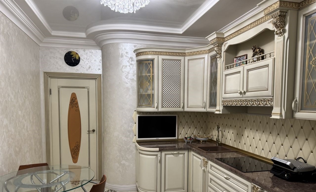 продается шикарная 2х комнатная квартира в классическом стиле. ремонт сделан для себя из качественных материалов на полу итальянская плитка, на стенах декоративная краска. в квартире два санузла, изолированные просторные комнаты, большая кухня с лоджией. остается встроенный кухонный гарнитур из натурального дерева со встроенной техникой, шкафкупе. дом с подземным паркингом, в подъезде консьерж. один взрослый собственник, более 5 лет в собственности. свободная продажа