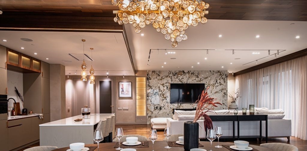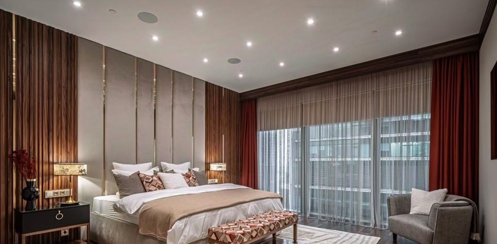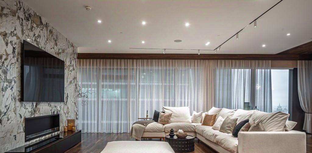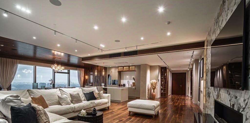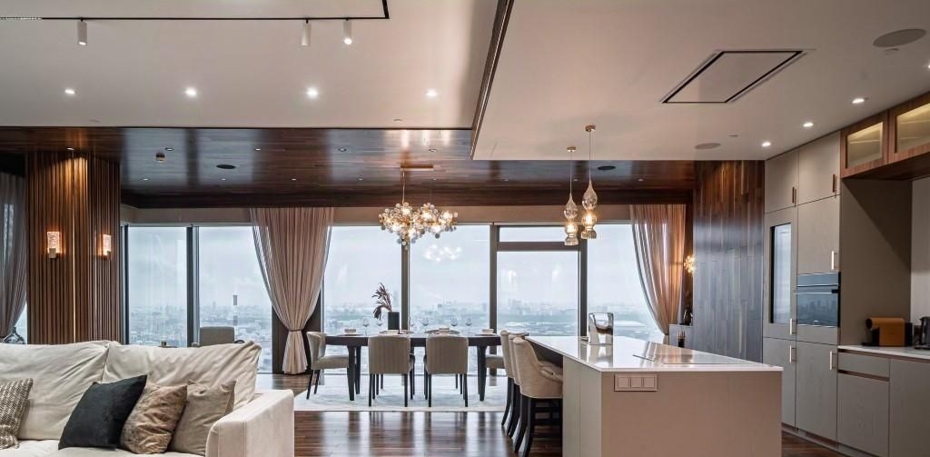 id 224232 квартира, где роскошь становится естественной средой 222 м² в мфк город столиц, москвасити, пресненская набережная, д.8, стр.1. интерьер это гармония дизайнерской мысли и безупречного вкуса мраморные поверхности, редкие породы дерева, авторские световые решения и панорамные окна, открывающие захватывающие виды на столицу. пространство наполнено светом и воздухом, а каждая деталь отделки продумана до совершенства. гостиная площадью 109 м² настоящий центр притяжения, где масштаб и эстетика создают атмосферу для больших приёмов и тихих вечеров. пространство зонировано с особым вниманием к комфорту барная стойка для утренних завтраков плавно переходит в обеденную зону со столом на восемь персон, а диванная группа у камина формирует уютное место для отдыха и общения. дополняют композицию два изящных диванчика у панорамных окон идеальное место, чтобы любоваться городскими огнями и ощущать дыхание мегаполиса. мастерспальня приватный сьют с ванной комнатой и гардеробной, оформленный в спокойных, глубоких тонах. кабинет легко трансформируется во вторую спальню, сохраняя концепцию приватности и комфорта. обе спальни полноценные сьюты, каждая с собственной ванной и гардеробной, что делает планировку идеально сбалансированной. высокий уровень отделки подчеркивает статус и уникальность пространства от текстурных стеновых панелей до изысканных декоративных акцентов. это место, где москвасити перестаёт быть видом из окна и становится частью вашей истории