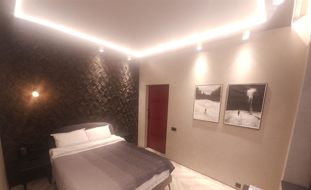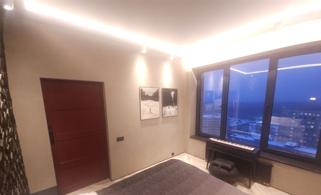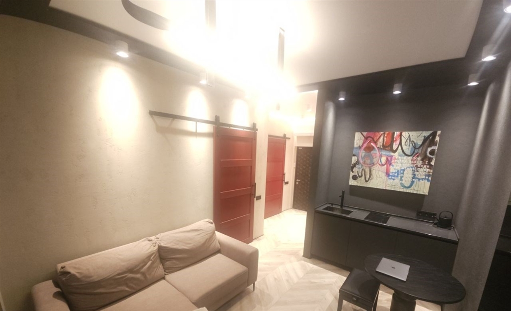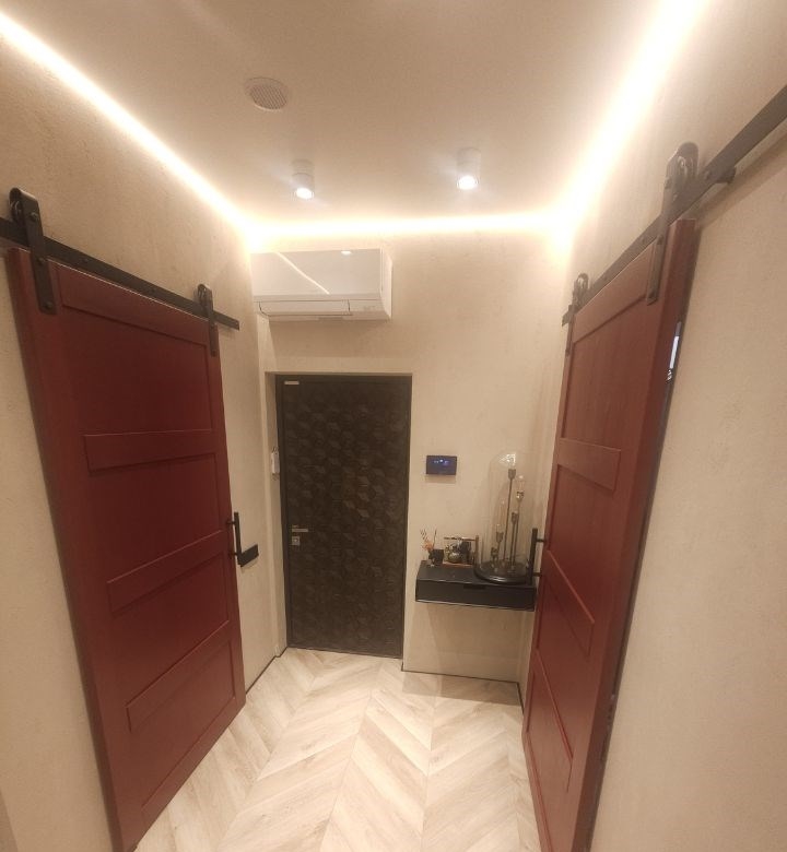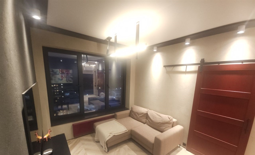 это апартамент для тех, кто любит чистый минимализм, но хочет, чтобы у интерьера был характер графит, дерево, черный металл и акценты. это пространство про вкус и свободу меньше вещей больше воздуха, света и настроения. в гостиной кино и музыка, фактурная темная стена и аккуратная зона отдыха, которая не перегружает комнату. спальня получилась камерной и расслабляющей мягкий свет, глубокие оттенки и ощущение приватности. есть отдельная гардеробнаяхозяйственная зона, чтобы видимое оставалось эстетичным, а нужное скрытым. санузел минималистичная чернобежовая с матовой душевой, стильным черным унитазом и теплым ledсветом.