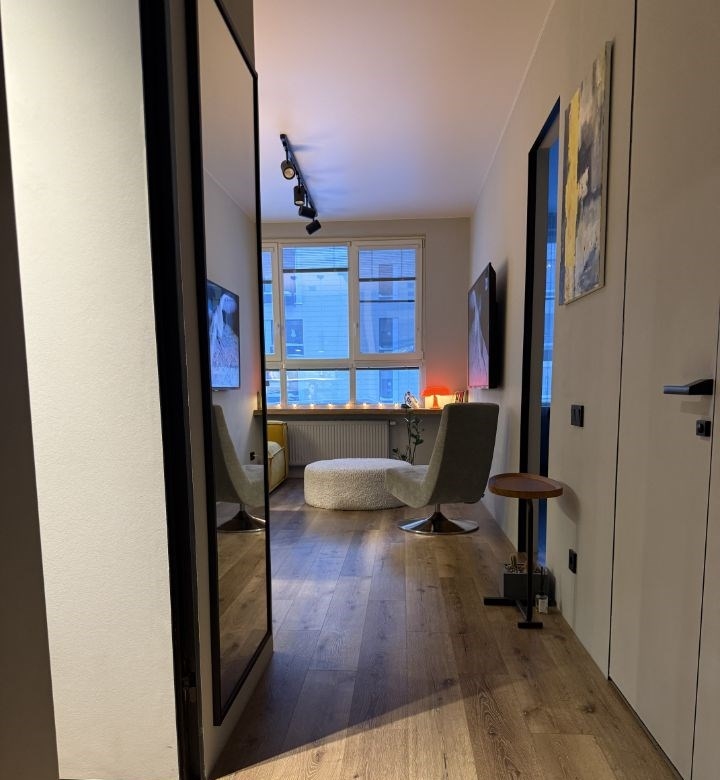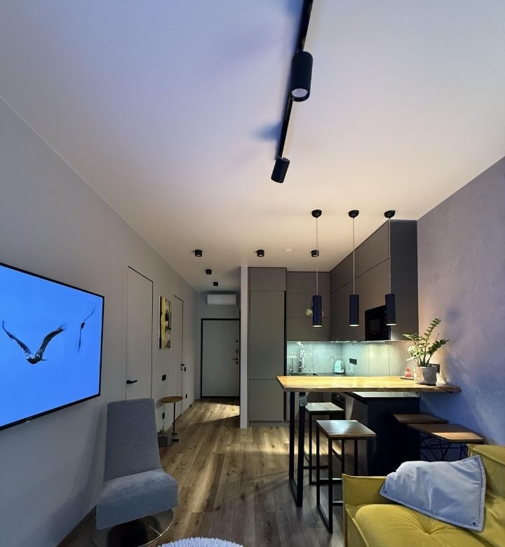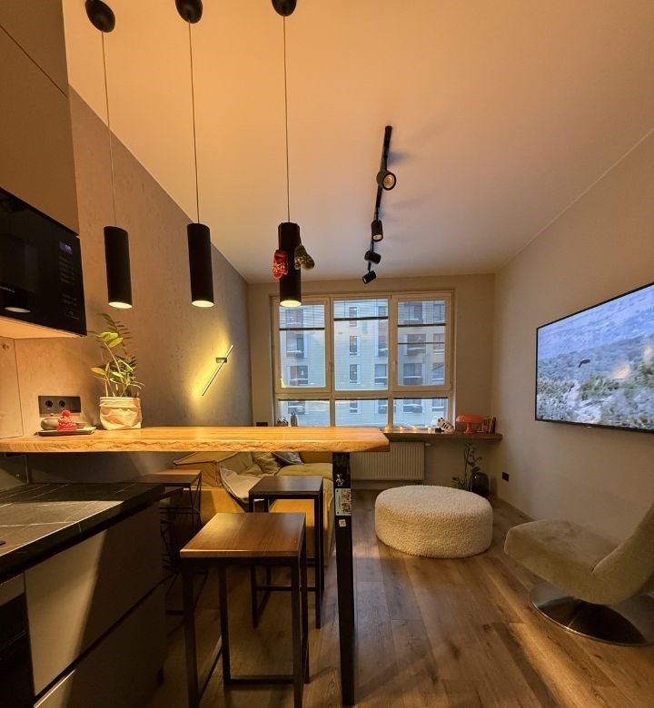 евродвушка, бизнескласса 45 м² в жк life варшавская, в малоэтажной застройке, с дизайнерским ремонтом и мебелью в окружении парков, между двумя станциями метро.стильная, продуманная до мелочей евродвушка, площадью 45 м² с премиальным дизайнерским ремонтом, без перепланировок. квартира полностью готова к проживанию никаких вложений, всё остаётся новому владельцу. делали не под аренду, а для себя, из качественных и долговечных материалов. планировка и комфорт просторная кухнягостиная с барной стойкой отдельная приватная спальня, с зоной для хранения одежды. гардеробная, при входе удобно для обуви и верхней одежды 15 сценариев освещения под отдых, работу и уютные вечера потолки 2,9 м, межкомнатные двери 2,3 м ощущение воздуха и пространства полная комплектацияквартира продаётся со всей мебелью и техникой, всё подобрано в едином стиле встроенная мебель под заказ, высокого качества премиальная мягкая мебель дизайнерские светильники часть на заказ барная зонаподоконники и столешницы обеденная зона, санузел выполнены из массива карагача толщиной 8 см редкое и дорогое решение. кухня кухонный гарнитур на заказ, фурнитура blum встроенная техника свчпечь варочная панель на 4 конфорки духовой шкаф встроенный холодильник трёхступенчатая система очистки воды фильтры заменены месяц назад спальня тишина и полноценный отдых сделана шумоизоляция шторы blackout кровать 180210 см, выполнена на заказ ортопедический матрас средней жёсткости высота 75 см прикроватные тумбы встроенный стеклянный шкафгардероб санузел сантехника grohe оригинал перегородка из закалённого стекла на всю высоту, изготовлена на заказ столешница под раковину из массива карагача стиральная машина с функцией сушки дополнительно инверторный кондиционер очень тихий, работает на тепло и холод москитные сетки на окнах 2 навесных smart tv приятные, тихие соседи закрытый двор для отдыха на первом этаже 2 колясочные и лапомойка. школа и садик в 30 метрах коммунальные платежи 89 тыс. руб.мес важно один собственник без обременений полная стоимость в договоре