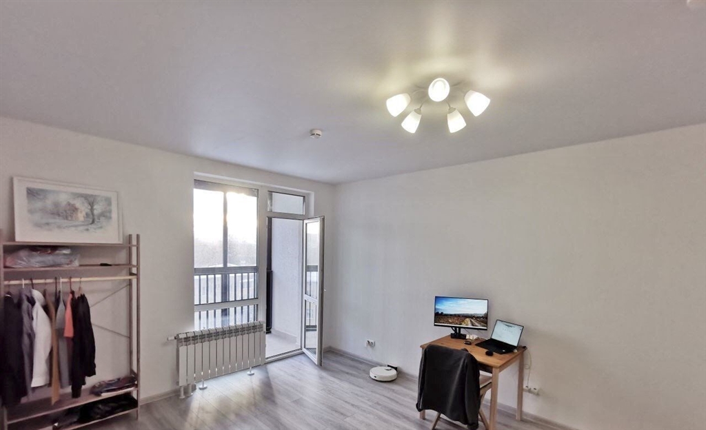 прекрасная современная квартира в новом доме общей площадью 37,7 кв. м жилая 19,0 кв. м, кухня 10,8 кв. м, высота потолков 2,65м. в коридоре имеется ниша под шкаф, санузел совмещенный, натяжные потолки, обои под покраску окрашены в белый цвет. окна выходят на юг во двор, квартира очень тёплая и светлая, просторная лоджия с панорамным остеклением. в подъезде имеется колясочная комната. подземный паркинг можно приобрести машиноместа. 1 собственник. квартира получена по реновации. предыдущая квартира в собственности с 2013 года. лёгкая альтернатива.