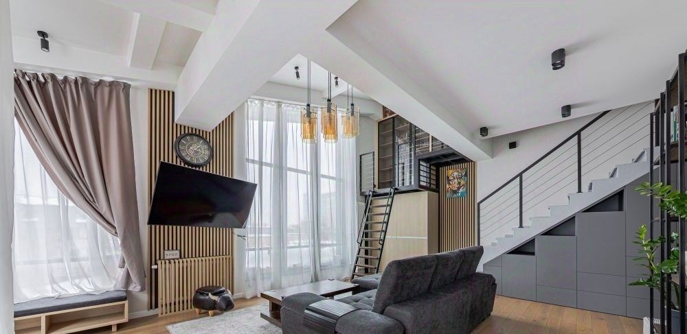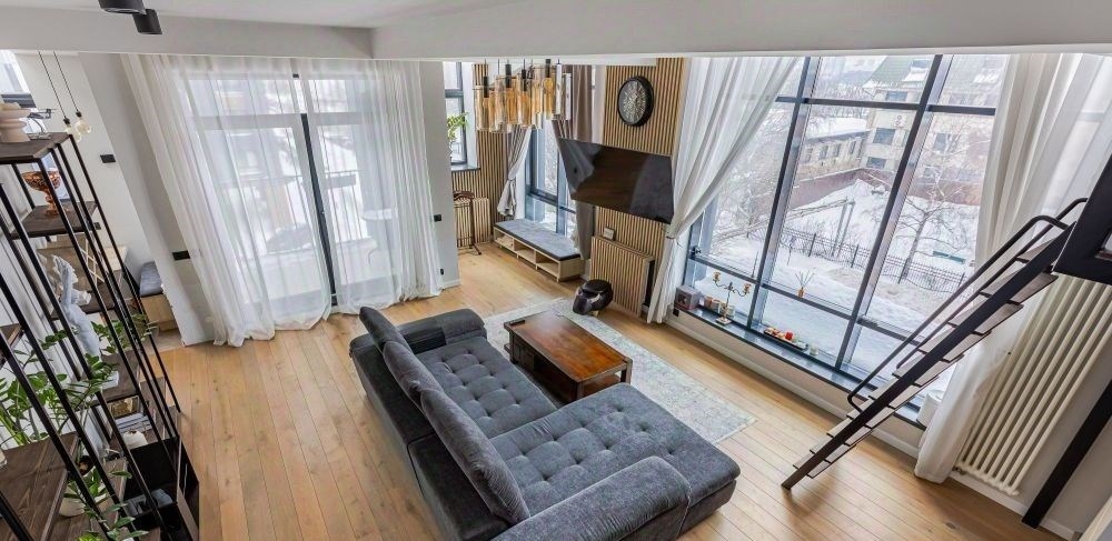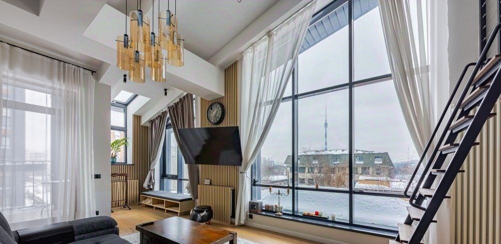 двухуровневые апартаменты площадью 80 м² в лофткомплексе studio 12.апартаменты расположены на мансардном этаже с видом из окон на тихую зеленуюулицу и панораму останкинской башни. полное ощущение загородной жизни вцентре москвы.выполнен премиальный дизайнерский ремонт в лаконичных светлых тонах. наполу уложена инженерная доска натурального цвета с покрытием лаком.подоконники и лестница выполнены в искусственном камне благородного цвета.стены выкрашены краской в один тон. произведена шумоизоляция по полу истенам. раздельное кондиционирование этажей, вытяжка и принудительнаявентиляция санузлов. тёплые полы в зоне плитки на полу. wifi, tv,видеонаблюдение.1й этаж прихожая, гостевой санузел с большой душевой кабиной, кухня, гостиная,балкон, открытый рабочий кабинет. 2й этаж мастерспальня и санузел с ванной.благодаря панорамным окнам пространство наполнено светом из окон с раннегоутра и до заката. из окна спальни спланирован выход на собственную крышу.в общем коридоре дополнительное место хранения шкаф с рольставнями.приватная наземная парковка для собственников позволяет не платить загородскую парковку нерезидентам района марьина роща. соседи спокойныереспектабельные вежливые люди. лофт подходит для современных, молодых,свободных и обеспеченных людей. комфортный и удачный адрес доставок из всехмагазинов. о комплексе studio 12studio 12 лофтквартал из 4 домов высотой 35 этажей на 214 апартаментовв районе марьиной рощи, в семи минутах на машине от садового кольца. фасадывсех зданий квартала спроектированы командой тт architects в единоминдустриальном стиле и облицованы красным клинкерным кирпичом и чернымфальцованным металлом. на закрытой охраняемой территории расположен скверс цветниками, прогулочными дорожками, скамейками и местами для отдыха.для машин предусмотрен наземный паркинг.входные группы декорированы в стиле лофт на стенах состаренный кирпич,в отделке использован серый и черный архитектурный бетон. вход в каждыйапартамент обозначен порталом и номером с подсветкой.в коллекции studio 12 апартаменты без отделки с высокими потолками от 3,5метров и большими окнами. у многих апартаментов предусмотрены французскиебалконы, классические балконы или выход на террасу. среди редких форматов мансардные апартаменты с возможностью спланировать второй уровень,и приватные двухуровневые таунхаусы с собственным входом и потолком до 7 метров.studio 12 находится в 10ти минутах ходьбы от метро марьина роща, а в 5тиминутах недавно открывшаяся станция метро шереметьевская. за 2 минутыможно дойти до фитнесклуба world class и торгового центра капитолий сомножеством магазинов и бутиков.из квартала удобный выезд на шереметьевскую улицу и проспект мира, а до ттк1,5 километра. неподалёку екатерининский парк, останкино и телецентрсвободная продажа, в собственности и более 5 лет, показ в любое время.