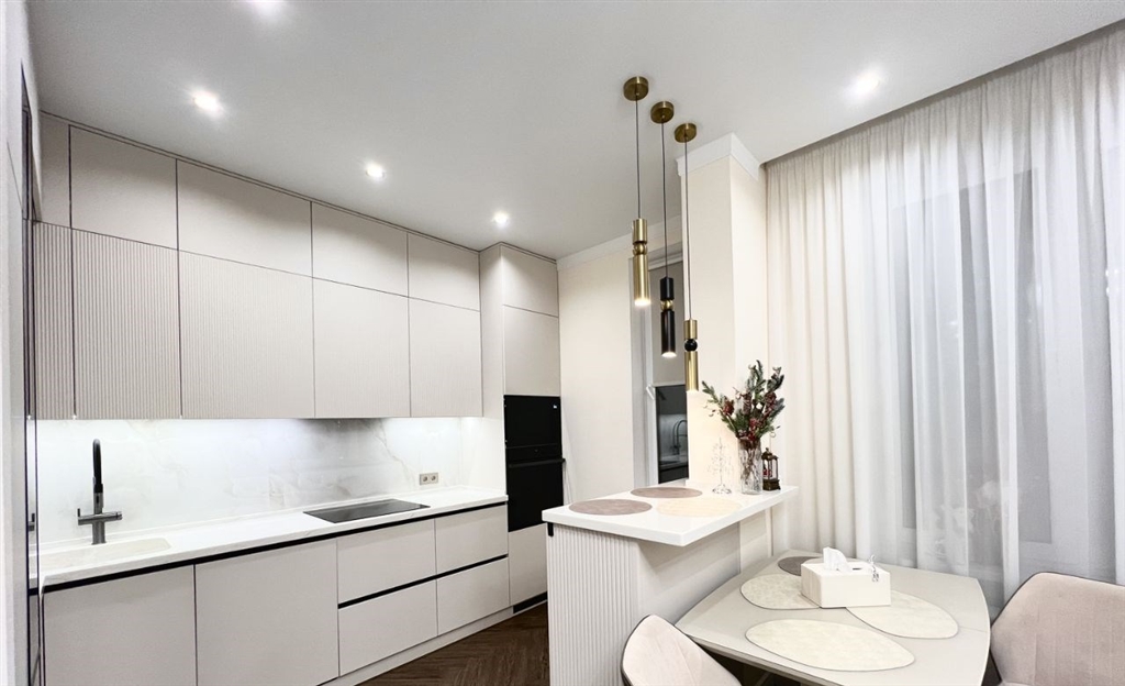 продается шикарная евро3х комнатная квартира с мебелью и бытовой техникой распашонка с 2мя гардеробными 2 изолированных комнаты и кухня гостиная вся мебель встроенная делалась под заказ основной цвет мебели нежно бежевый