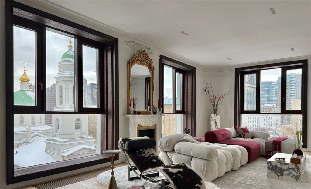 дизайнерская квартира 90 м² с панорамным видом на садовом к продаже предлагается просторная стильная квартира с авторским интерьером в новом клубном доме на 7 этаже. из окон редкий вид на храм флора и лавра. проект публиковался в международном издании по дизайну. просторная кухнягостиная с 5 панорамными окнами, мастерспальня, гардеробная, су и гостевой санузел. обставлена дизайнерской мебелью диван camaleonda, кушетка le corbusier мраморный портал с электрокамином и антикварным зеркалом кухня miele со шпоном и каменными столешницами кровать с металлизированным покрытием, фрески на потолке гардеробная в стиле balenciaga ореховый шпон ванная из мрамора с умным стеклом холл и су в глубоких винных тонах инженерия умный дом алиса увлажнение воздуха и фильтрация воды теплые полы техника miele, тв samsung the frame редкое предложение для ценителей архитектуры и приватности в центре москвы.
