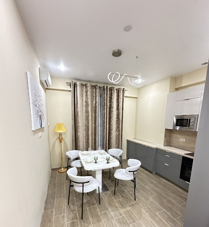 уютная светлая теплая однушка с качественным ремонтом в жк бизнеспремиум классе режиссер. квартира полностью готова к проживанию, вся мебель и техника абсолютно новая, кондиционер, большая лоджия, достойные соседи. квартира в ипотеке под 6. возможна длительная рассрочка.