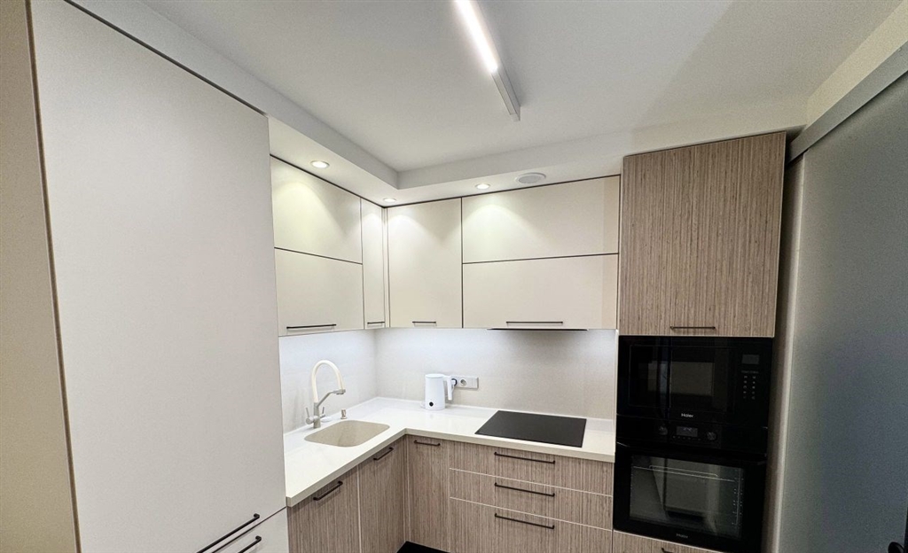 в квартире сделан капитальный ремонт. замена всего, включая сантехнические стояки. утепленная лоджия 6 метров вся мебель сделана на заказ. столешница кухни, включая фартук, и подоконники из искусственного камня. интегрированная мойка. вся бытовая техника haier. варочная панель индукционная, духовой шкаф, микроволновка, вытяжка, измельчитель бытовых отходов, посудомоечная машина, холодильник no frost, стиральная машина, сушильная машина, телевизор oled. электрические теплые полы в коридоре, кухне, санузле. в комнате на полу паркетная доска. отдельная оборудованная гардеробная. есть встроенная гладильная доска. бойлер. кровать с ящиком для хранения. все делали качественно для себя полотно двери 220 покупалась за наличные. обременений нет во дворе всегда есть место для парковки дом во дворе. тихо и зелено. метро 7 мин пешком. школы, магазины, детские сады.