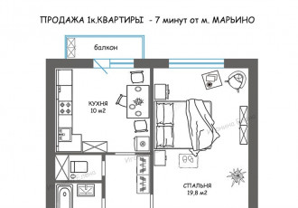 продаётся просторная 39,4 метра без учёта двух лоджий однокомнатная квартира. состояние исправное, но ремонт необходим. основные преимущества квартиры дом расположен в вдали от дороги в 400 стах метрах от станции метро марьино 6 мин пешком через...