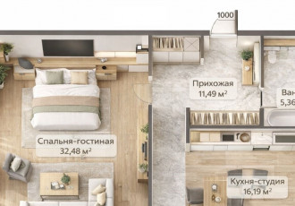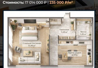 эксклюзивное жилье в доме бизнескласса жк loft 151 лофт 151.стильная и функциональная квартира 72,4 м² с продуманной планировкой большая спальнягостиная 32,48 м², отдельная кухнястудия 16,19 м², просторная прихожая 11,49 м² и большая ванная 5,36 м²...