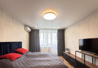 уютная однокомная квартира в доме повышенной комфортности, приобреталась у застройщика в 2001 году, большая комната с балконом, пол паркет, окна на симферопольский бульвар, имеется кондиционер, большой встроенный шкаф, диван, встроенная кухня...